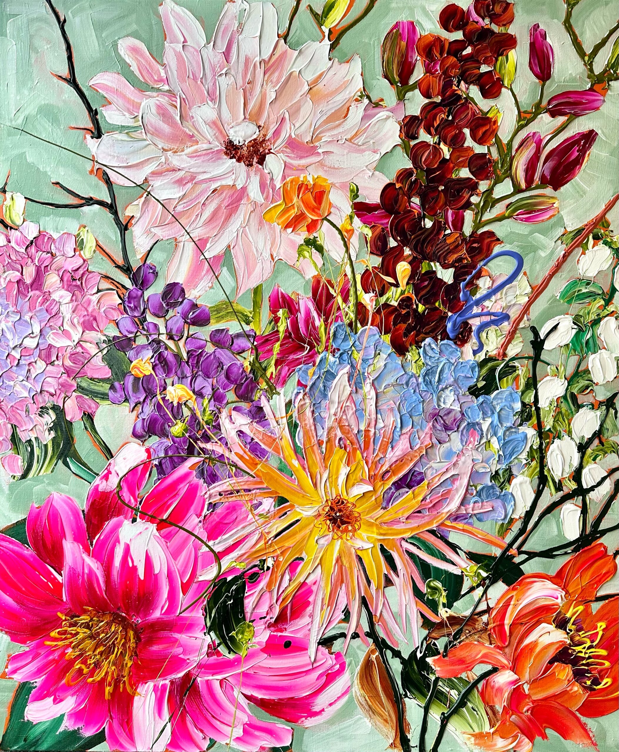 Mine BLOMSTERBOMBER er en eksplosiv serie af malerier, der er karakteriseret ved at emme af energi, power og sprudlende optimisme.