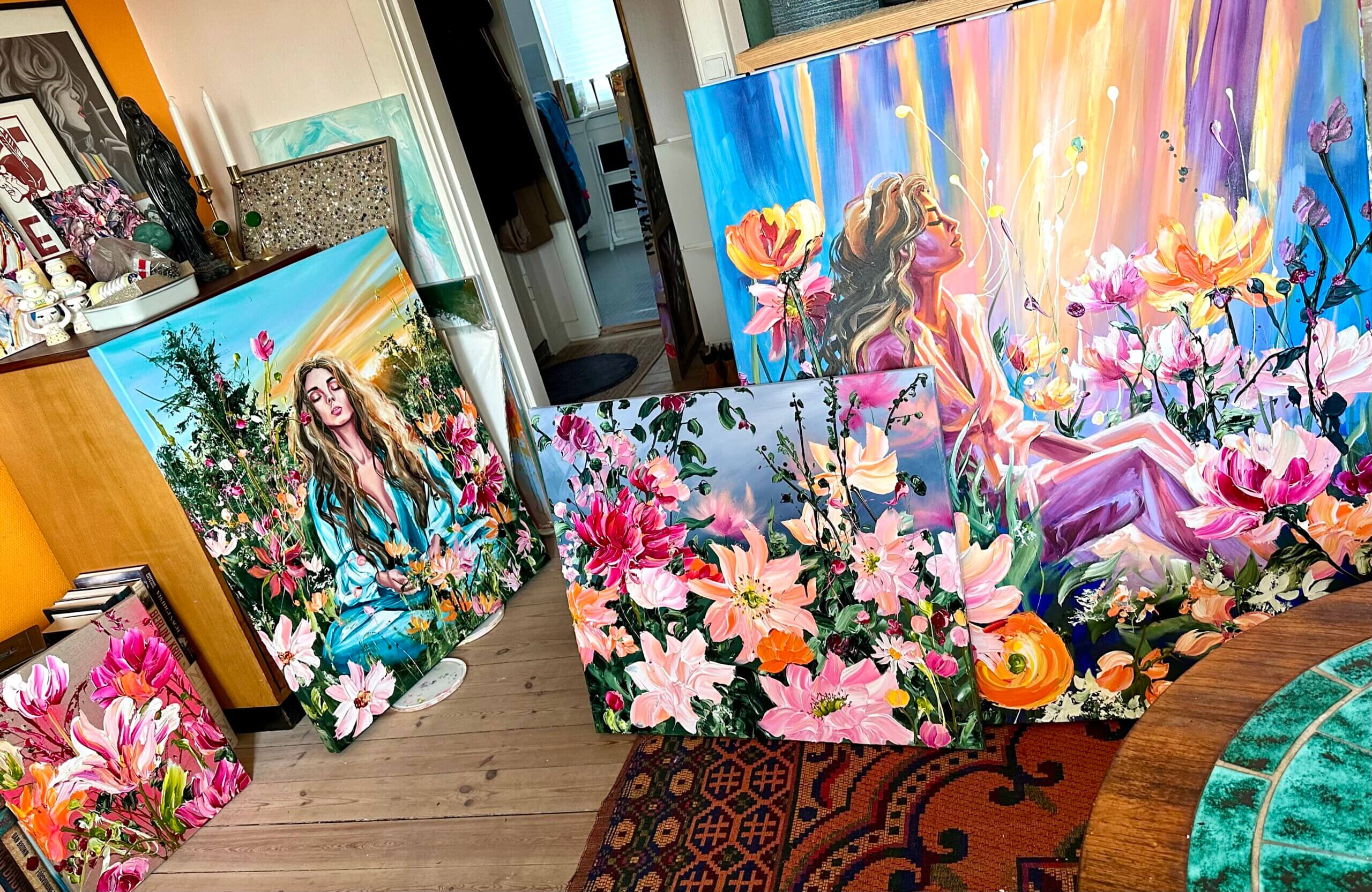 Mine BLOMSTERBOMBER er en eksplosiv serie af malerier, der er karakteriseret ved at emme af energi, power og sprudlende optimisme.